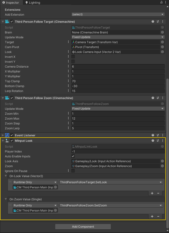 ### 4. Add the MInput Link Component to your character