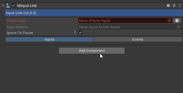 Add Unity Player Input Component and set it as reference for the Input Link