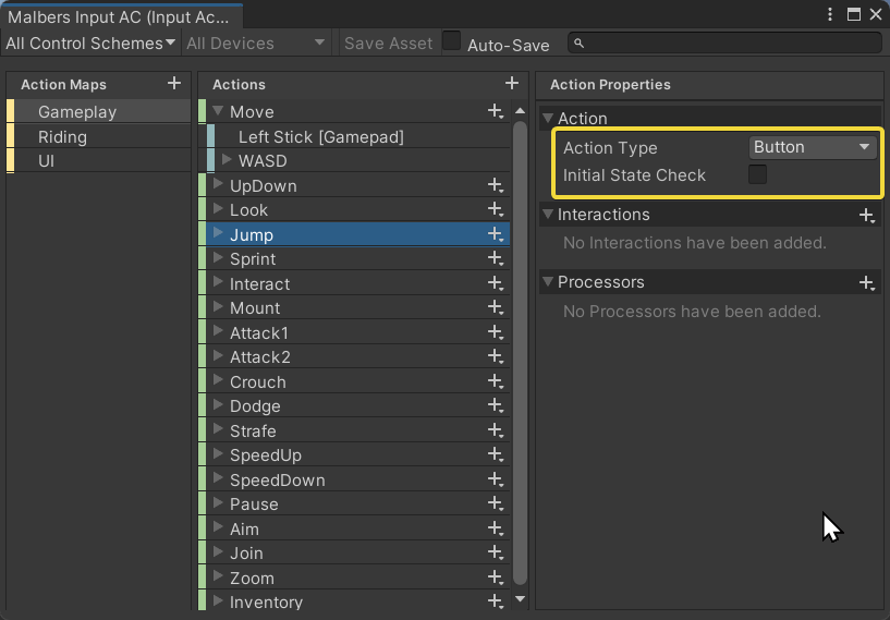 Use this Input type for all button interactions (Jumps, Actions, Sprint, etc)