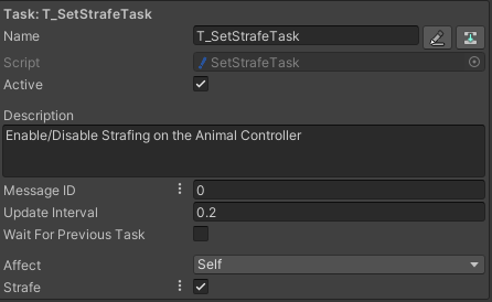 If True, this will activate strafing when the task starts. If False, it disables it.