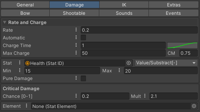 All weapons inherit from the MWeapon class and share the following Damage properties.