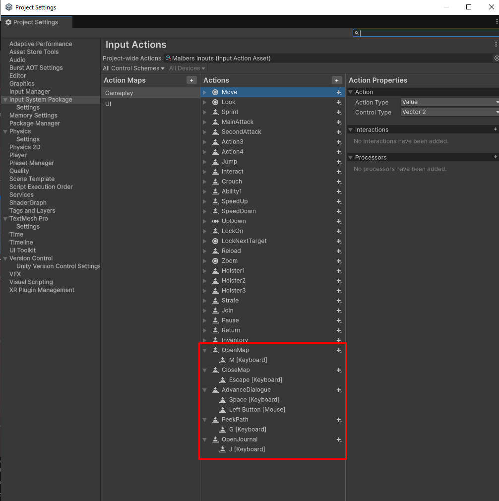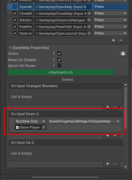 | `AdvanceDialogue` | `Space`       | `Down`      | Add a second binding for `Enter` if needed. You can also set it up via LeftMouseClick on the actual inputs itself! |