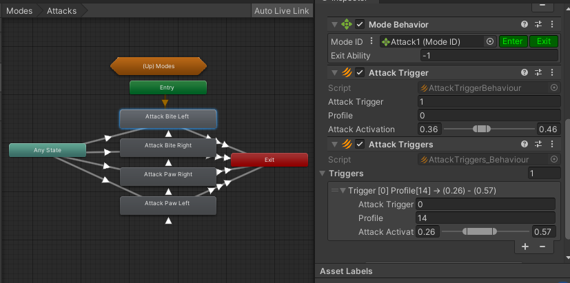 <figure><img src="https://963537199-files.gitbook.io/~/files/v0/b/gitbook-x-prod.appspot.com/o/spaces%2F-Lzhr1XSMzMqNXjRnNlb%2Fuploads%2FPYj0q2cBKWBXW6Rfn25e%2Fimage.png?alt=media&#x26;token=5e01a6da-a223-4c54-9c8f-8349ec6af138" alt=""><figcaption><p>Add the Attack Trigger Behaviour to your Animations with the Attack Trigger ID and Profile to Activate the Attack Trigger component</p></figcaption></figure>