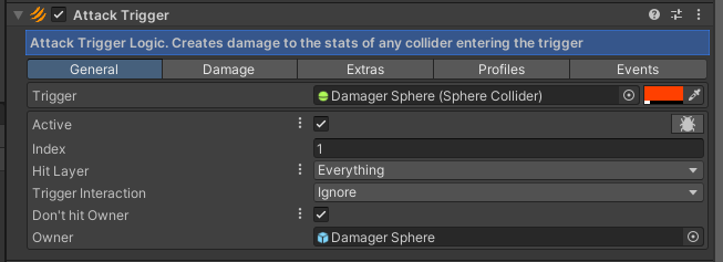 The values inside the Profiles are the same parameters you can override in the Attack Trigger component.